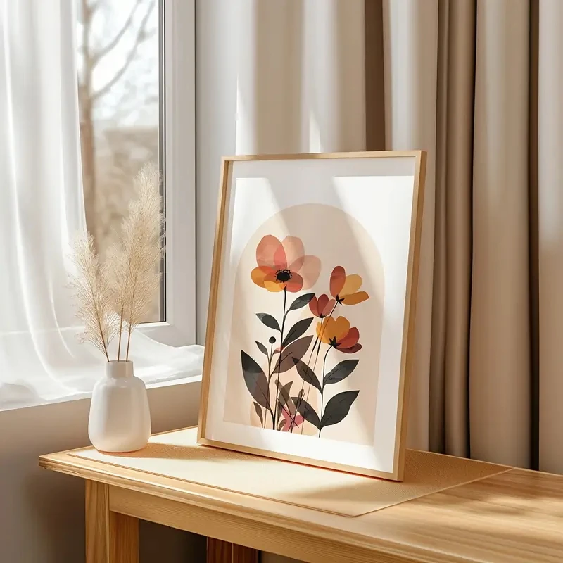 3pcs/Set Beige Bohemian-style Abstract Floral Print Art Canvas Poster Plant Autumn Bedroom Living Room Corridor Wall Decoration