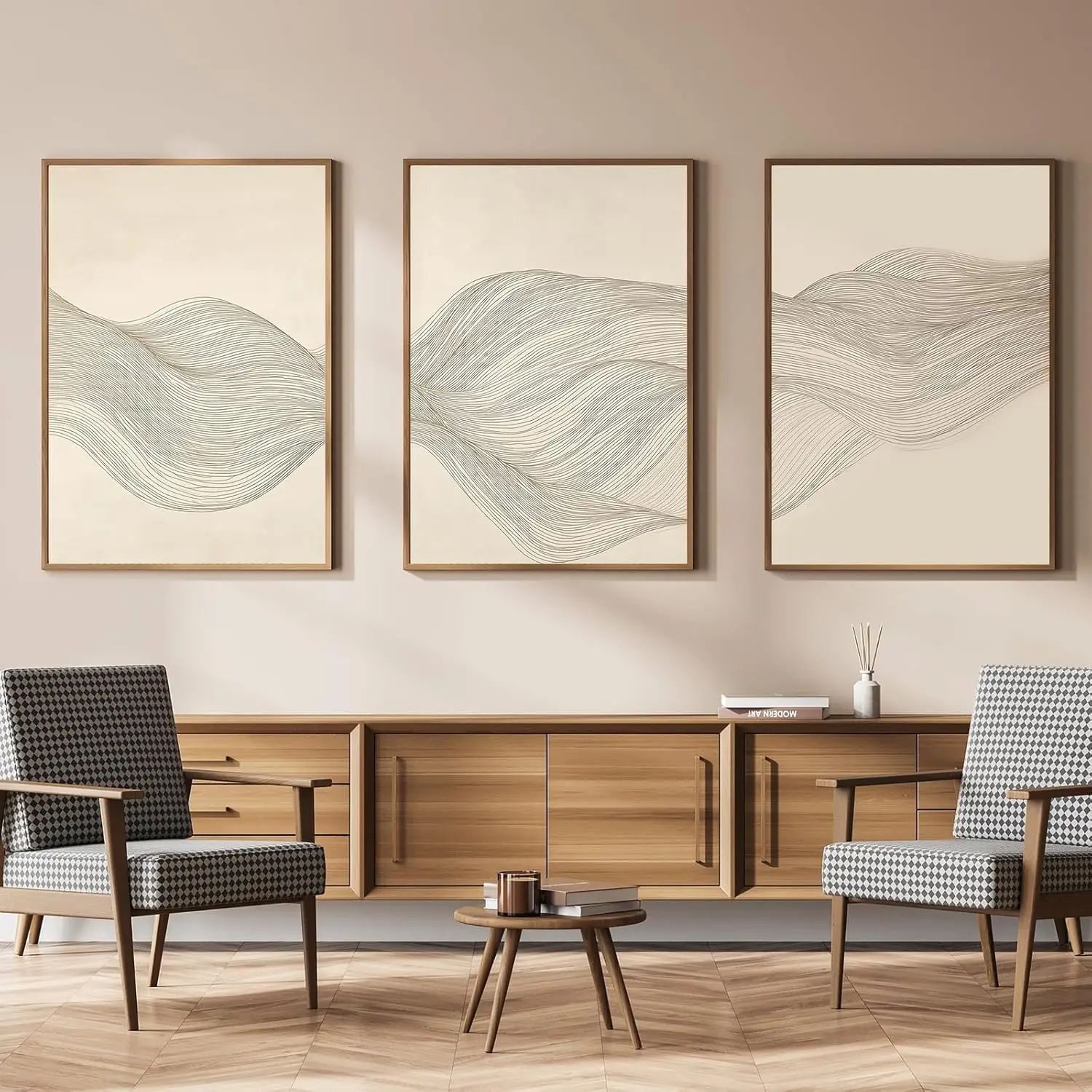3pcs/Set Bohemian Beige Line Canvas Posters Picture Wall Decorations Abstract Minimalist Living Room Paintings Home Decoration
